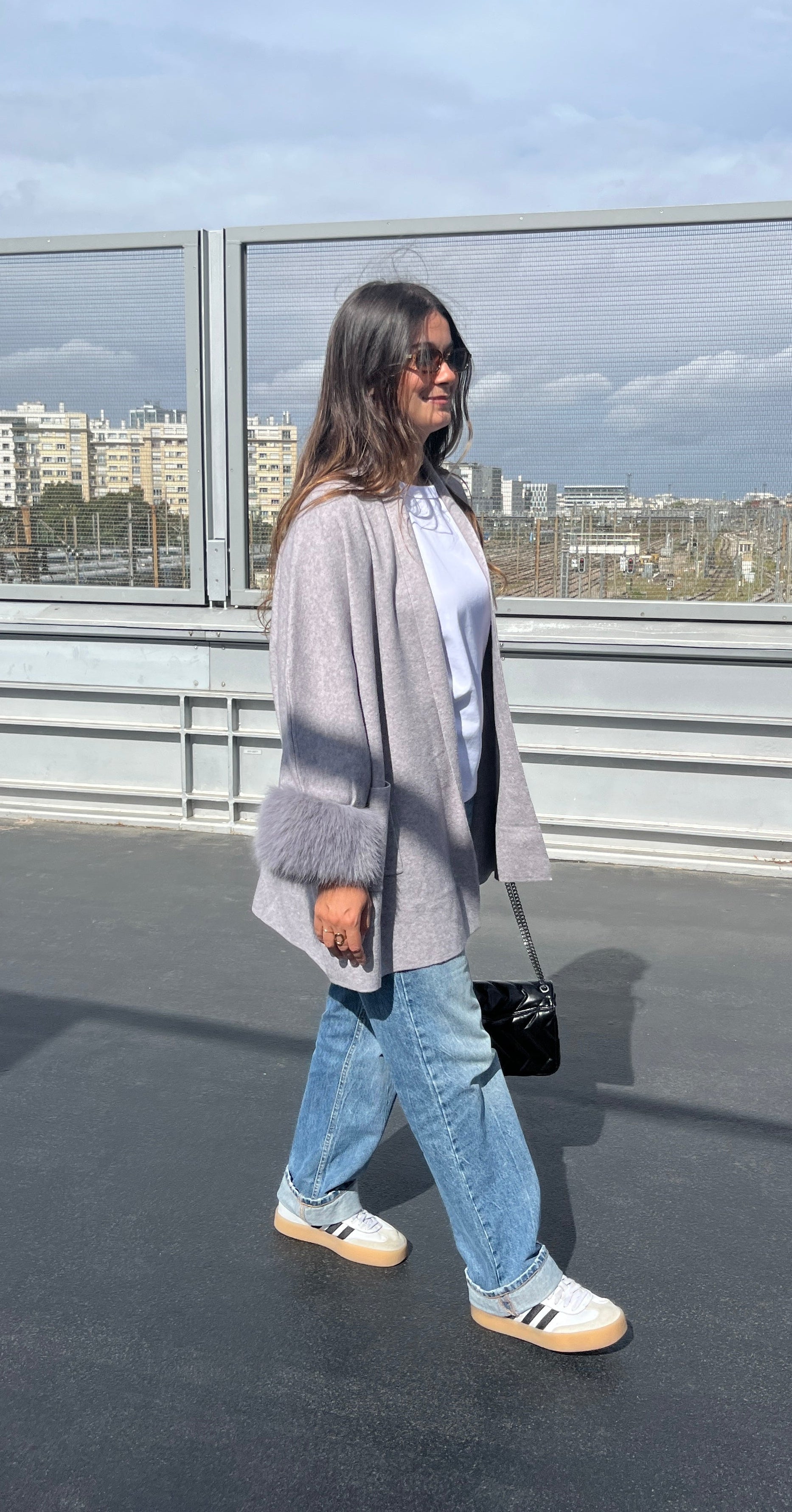Veste en fourrure grise